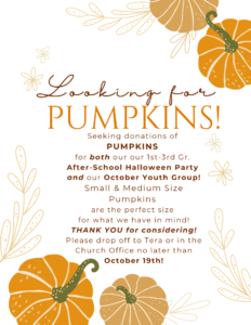 Wednesday, October 15- NO WEDNESDAY EVENING ACTIVITIES